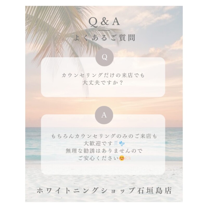 A. もちろんカウンセリングのみのご来店も大歓迎です🦷🫧無理な勧誘はありませんのでご安心ください☺️🫶🏻